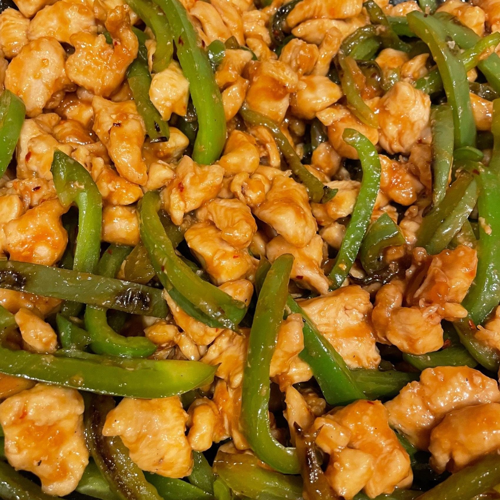 Switch off the heat and add in the cooked chicken & bell peppers, mixing until coated. Sprinkle with the crushed red pepper, to taste. Serve over the jasmine rice. Sprinkle with more crushed red pepper if you enjoy a little extra spice, and it looks pretty for presentation! Sesame seeds would also be good here.