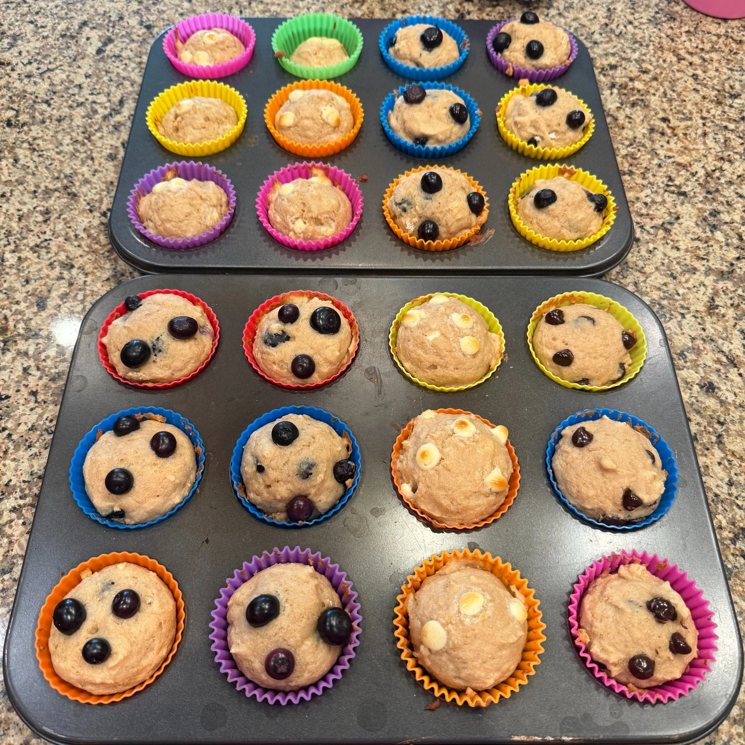 Grease a muffin tin or use silicone liners. Fill each muffin cup about 3/4 full with the batter.
