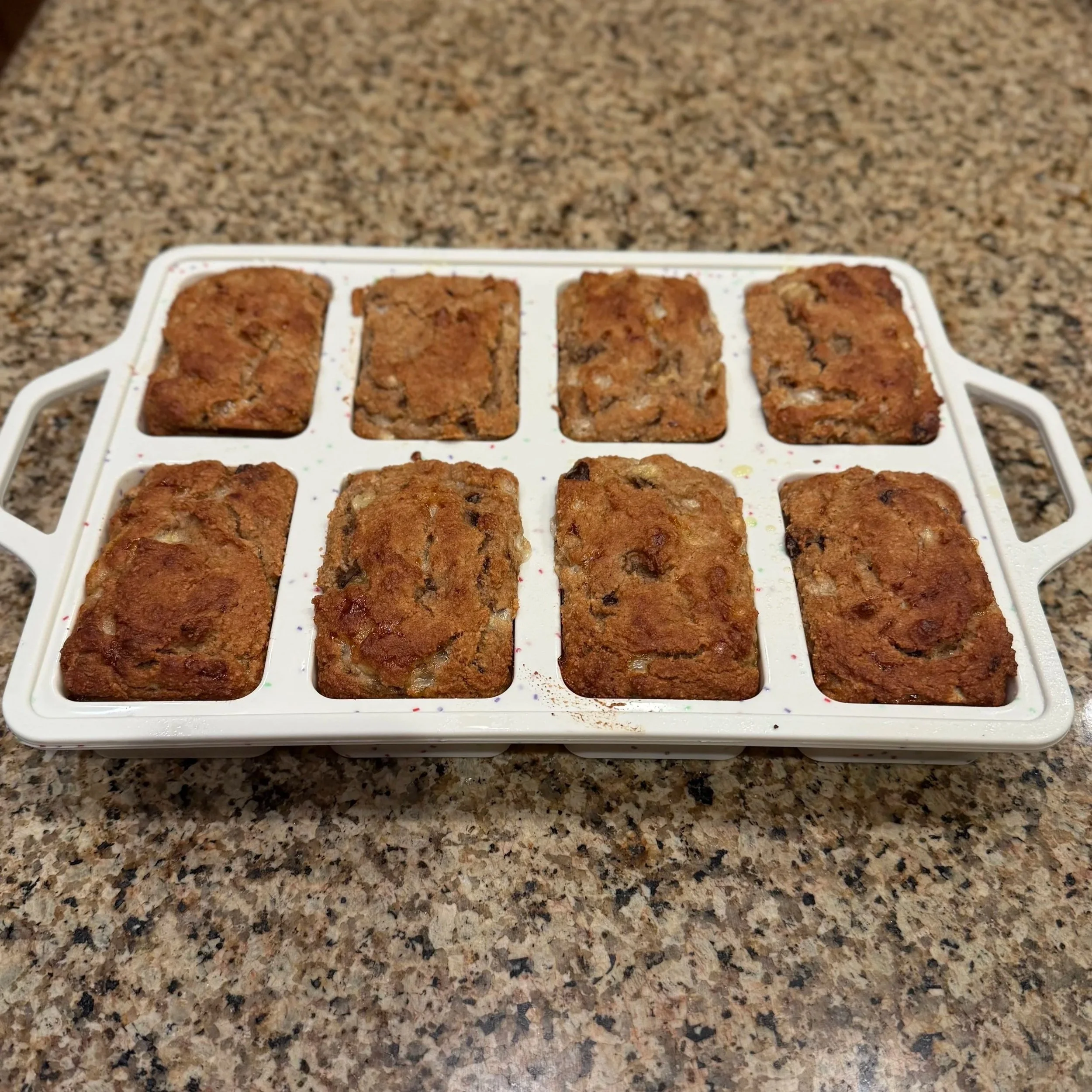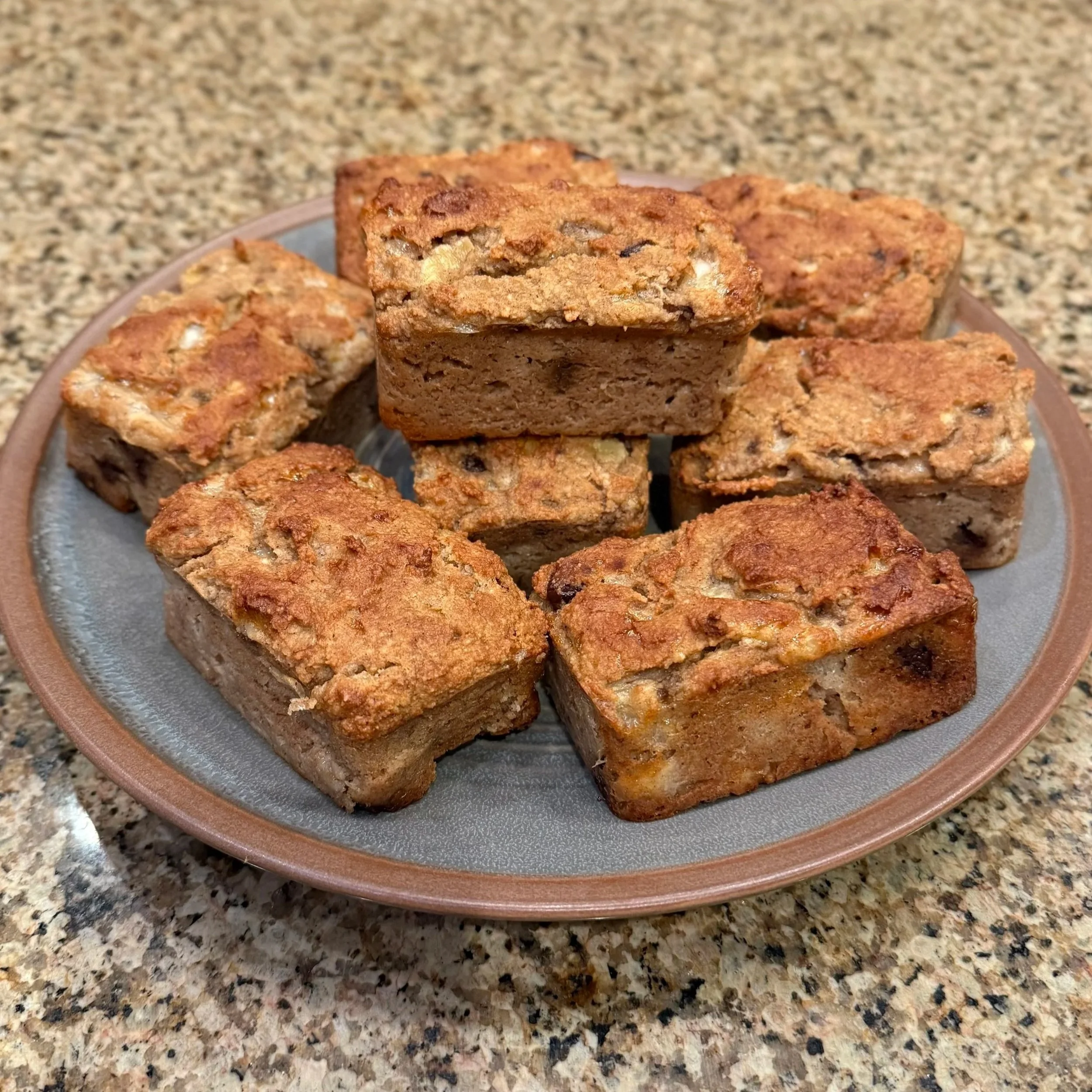 Optional add-ins: chopped walnuts (instead of, or in addition to, the chocolate chips. I just used 1/4 cup of chocolate chips, and we were all very satisfied! It helps keep your fat macros down 😜 But walnuts would be super yummy!)